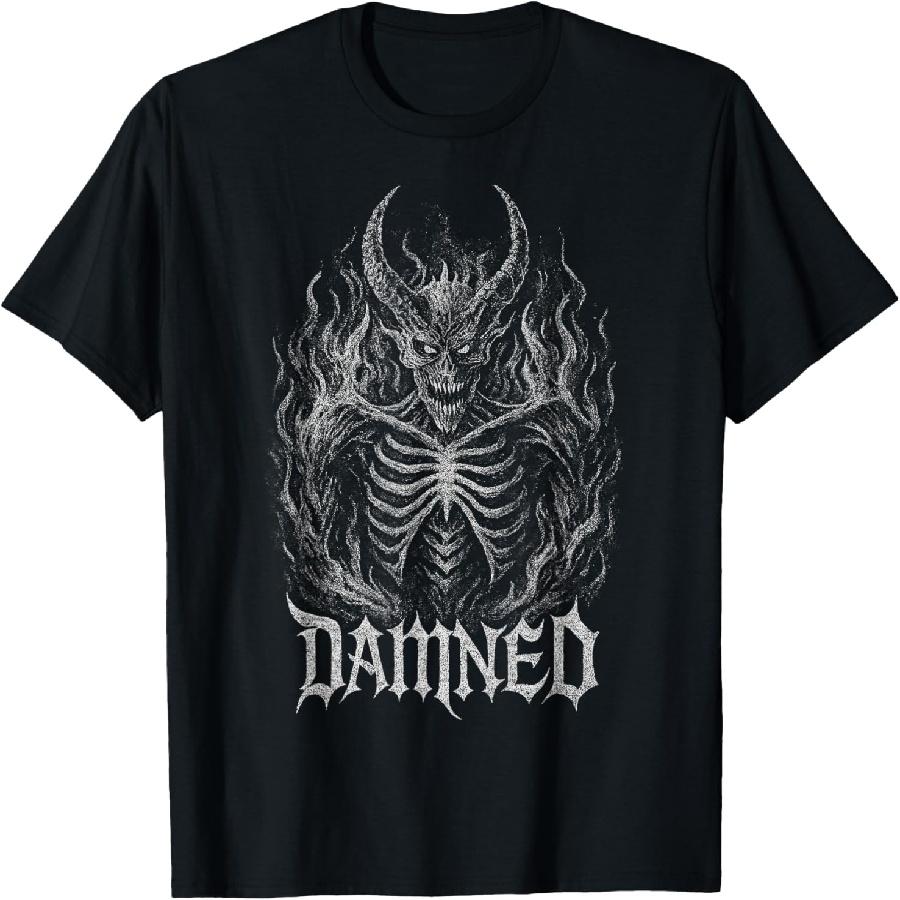 Satanic Demon Skeleton Hell Flames 666 Baphomet Alt Dark Art T-Shirt