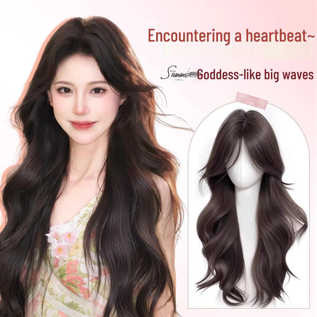 Natural-Look Long Curly Full Wig with Large Waves - Invisible Seamless Cap for Fluffy, Voluminous Coverage