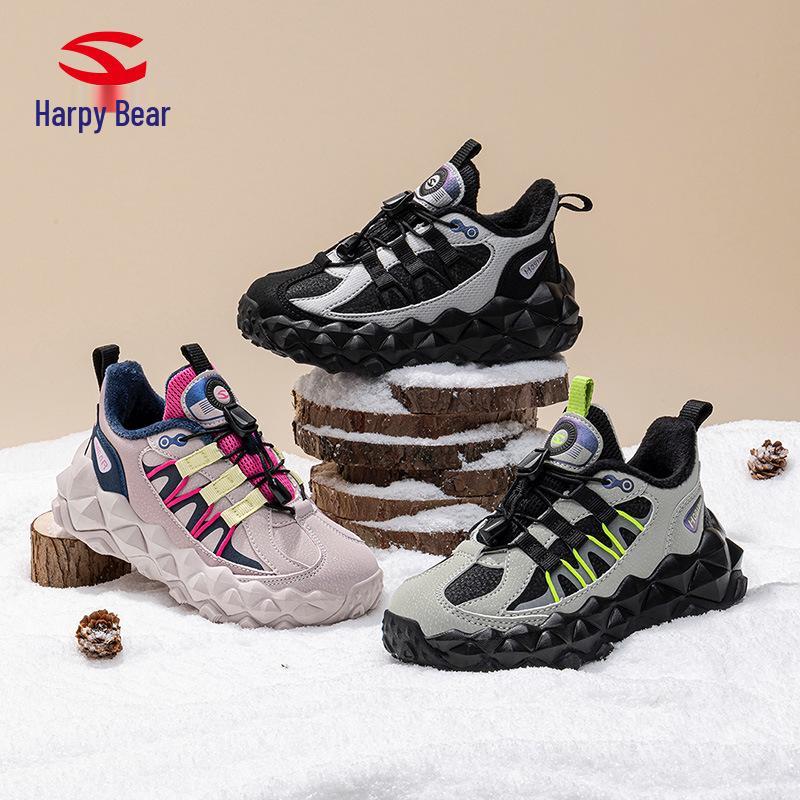 Happy Bear Plush-Lined Boys' Winter Cotton Sports Shoes - Lightweight, Cold-Resistant, Two-Layer Outdoor Running Shoes