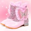 Girls' Plus Velvet Rhinestone Butterfly Boots - Warm Autumn/Winter High-Heeled Short Boots for Kids.