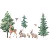 Cartoon Forest Deer Wall Stickers with Pine Trees, Removable Decals for Kids Room Nursery Kindergarten Decor