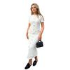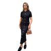 Rochie Lungă Tricotată cu Nasturi pentru Femei Mânecă Scurtă Gât Rotund Rochie Tip Sacou Rochie Formală pentru Invitați la Nuntă Petrecere Rochie de Cocktail