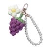 Crochet Flower Keychain Handmade Flower Fruit Bag Charm Cute Keychain Pendant with Faux Pearl Chain Accessory for Girls Women Keys Backpack