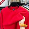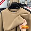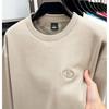 High-End Men's Royal Blue Embroidered Sweatshirt, Round Neck, Velvet-Lined for Autumn/Winter Warmth