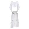 Womens Belly Dance Costume V Neck Lace Up 3/4 Tulle Flare Sleeve Crop Top Sequin Beaded Chiffon Skirt
