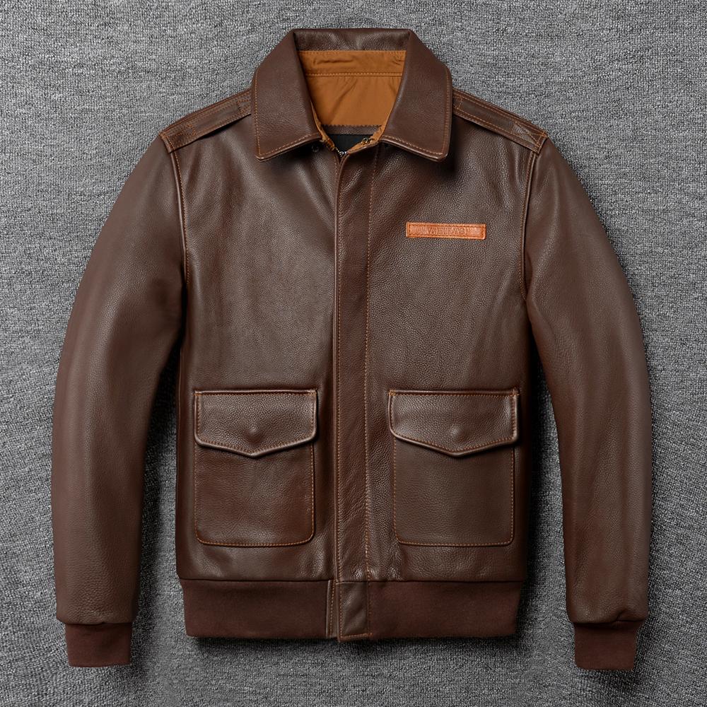 Men's Leather Jacket Genuine Cow A2 Flight Suit Man Aviator Bomber Coat Men Cow hide Leather Jackets Spring Autumn — cumpără ieftin în cadrul magazinului online Joom