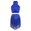 Womens Chacha Salsa Dance Outfit Halter Sleeveless Backless Shiny Ruched Crop Top Tiered Tassels Skirt Built In Shorts — cumpără ieftin în cadrul magazinului online Joom