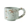 Ceramic Coffee Cup Handmade Rose Bamboo Leaf Embossed Pattern Mug 290ml Rustic Textured Mug Microwave Oven Safe Stackable Gift for Coffee Lovers