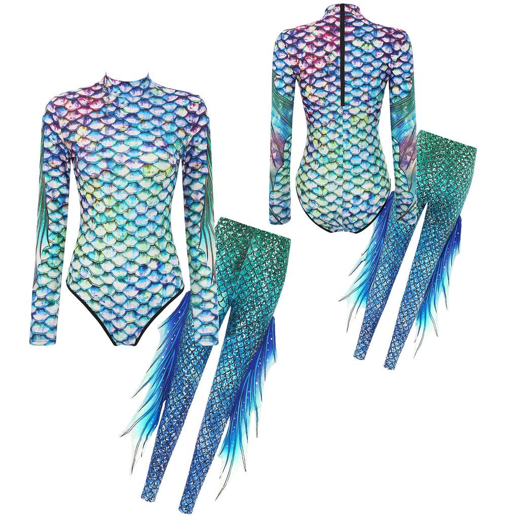Shimmering Mermaid Stage & Party Jumpsuit S-XL: High Waist Tights Design with Stand Collar, Eye-Catching for Halloween