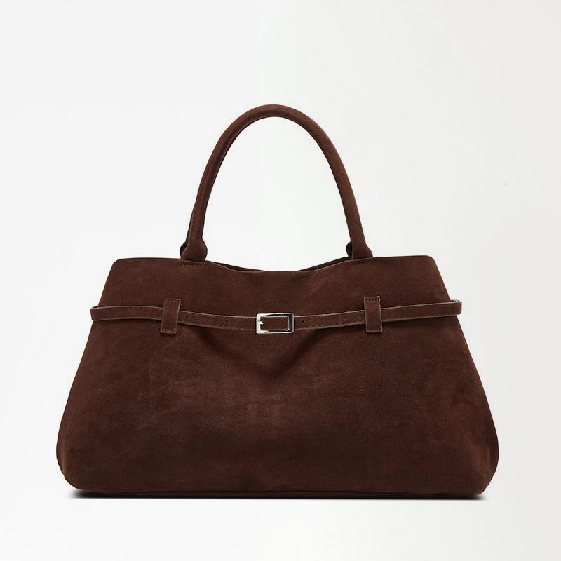 Women's Large Capacity Vintage Tote Bag - Elegant Brown, Structured Snap Closure, Sturdy Handles for Work, Travel, Everyday Use