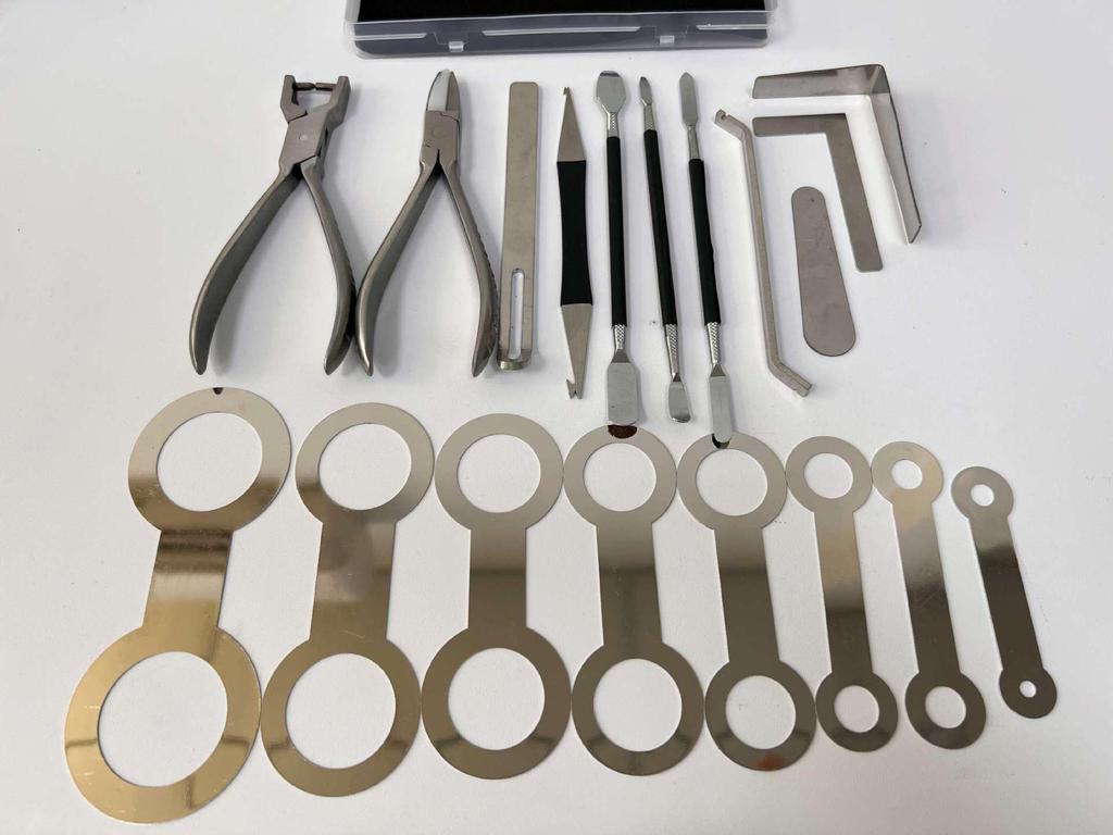 Set de scule pentru ajustarea clapetelor de saxofon și instalarea arcurilor