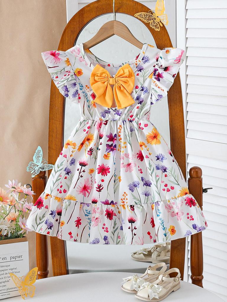 Girls' Summer Puff Sleeve Dress with Back Bow Decoration - Sweet and Trendy Hot Seller