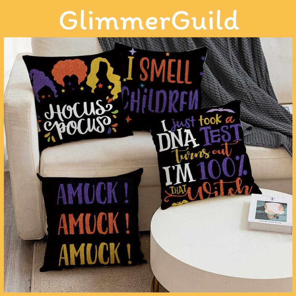 Hocus Pocus Cushion Cover Halloween Themed Home Decor Soft Linen Material Machine Washable 18x18 Inches