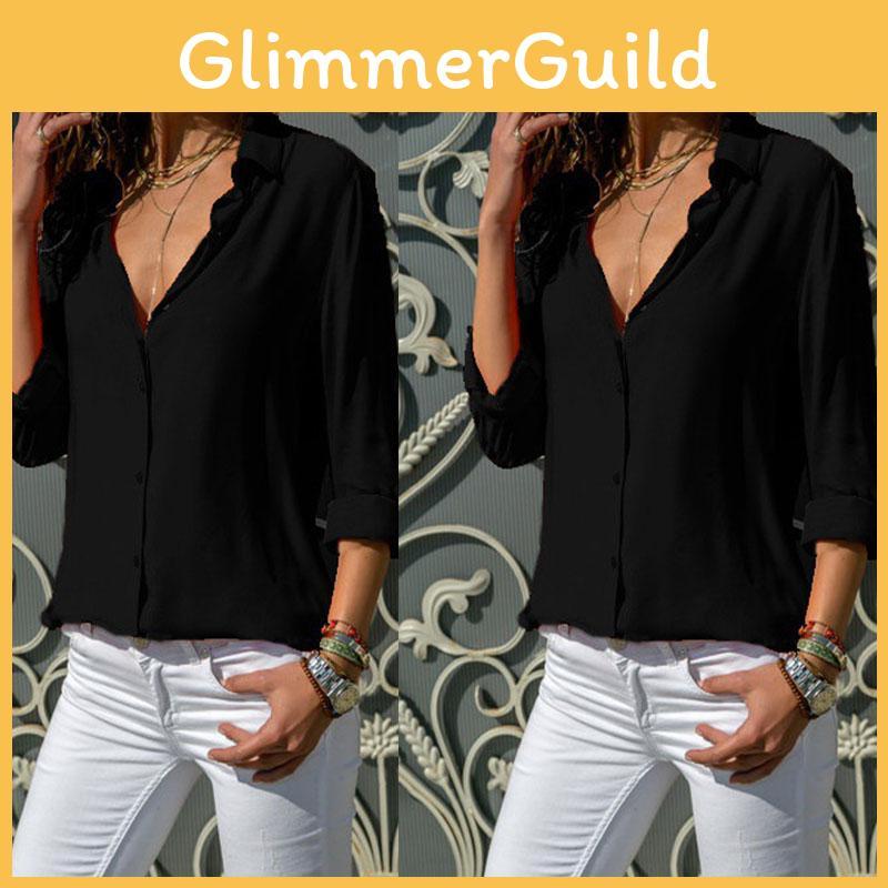 Timeless Solid Color Womens Long Sleeve Office Blouse Dress Shirt