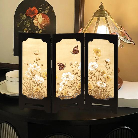 Mini Floral Folding Screen Rustic 3 Panel Room Dividers Chinese Style Vintage Desktop Folding Screen Feng Shui Ornaments for Home Office Table Decor — cumpără ieftin în cadrul magazinului online Joom