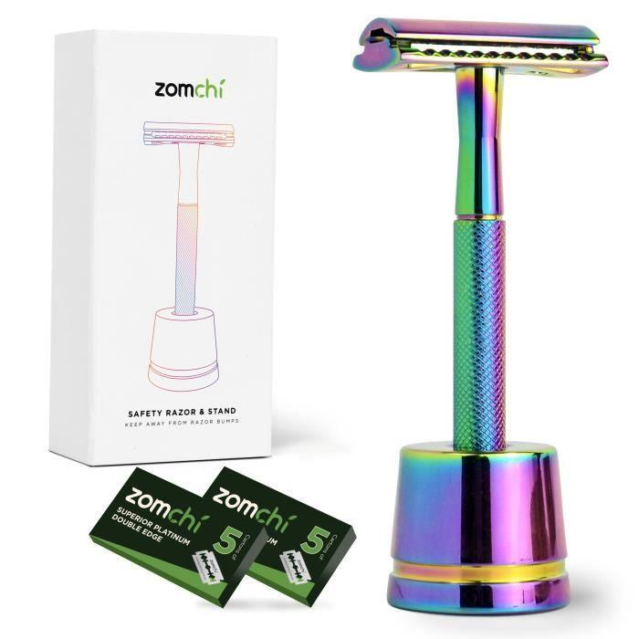 Rasoir de sécurité - zomchi - métal - double tranchant - socle inclus - 10 lames