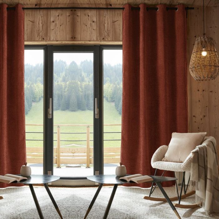 Lot de 2 rideaux occultants phoniques et thermiques doublés polaire "Bjorn" 100% opaque Le fil d'Ariane - Bjorn Terracotta - 2 Panne