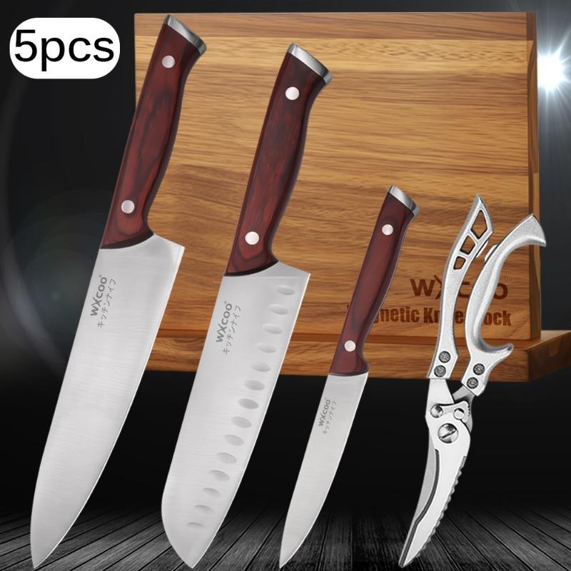 5PCS Stainless Steel Meat Cleaver Butcher Knife Meat Cleaver Professional Chef Knife Magnetic Storage Knife Rack Knife Block