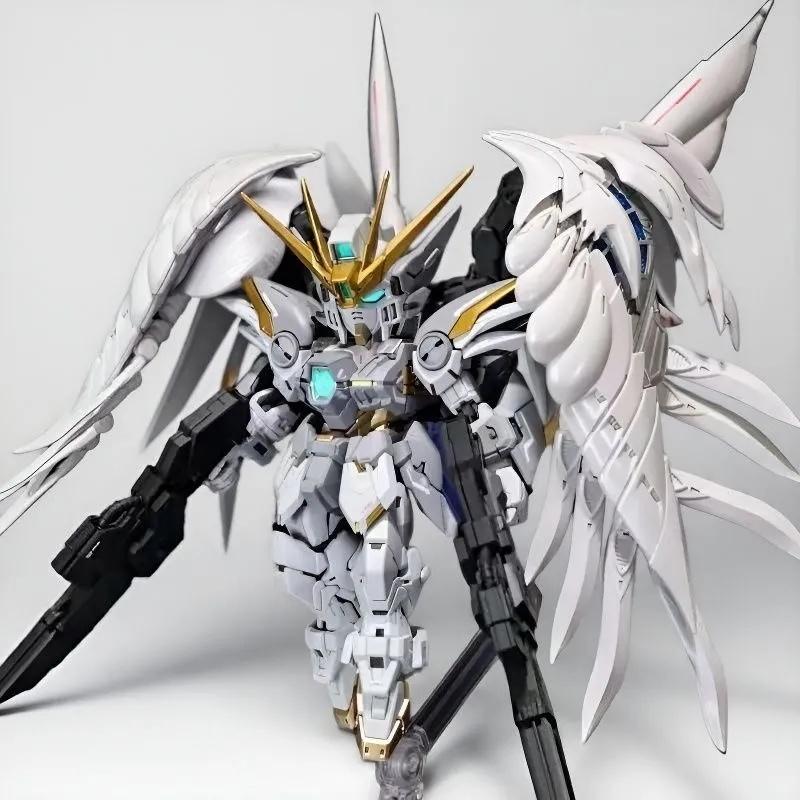 GL MGSD Wing Zero EW Snow White Version Angel Feather Drop Mech Assembly Model Kit Action Figure Desktop Decoration Doll Boy Toy