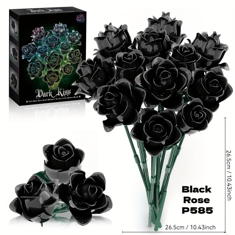 585PCS Black Rose Bouquet Building Blocks Set Gothic Artificial Flower Home Decor Bricks Kids Educational Toys Holiday Gifts — cumpără ieftin în cadrul magazinului online Joom