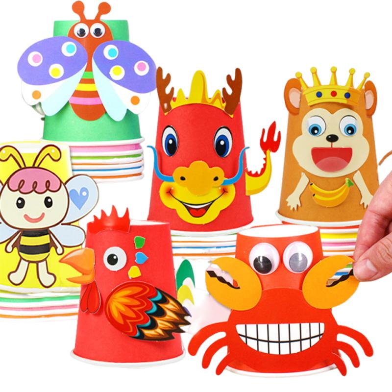 Children 3D DIY Handmade Paper Cups Sticker Material Kit 12pcs Whole Set Kids Kindergarten School Art Craft Educational Toys TMZ