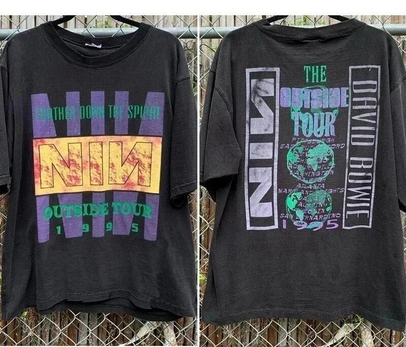 Rock Retro Tops 1995 David Bowie The Outside Tour 2 Side Black Unisex TShirt Short Sleeve Women Men Crew Neck Cotton Tee — cumpără ieftin în cadrul magazinului online Joom