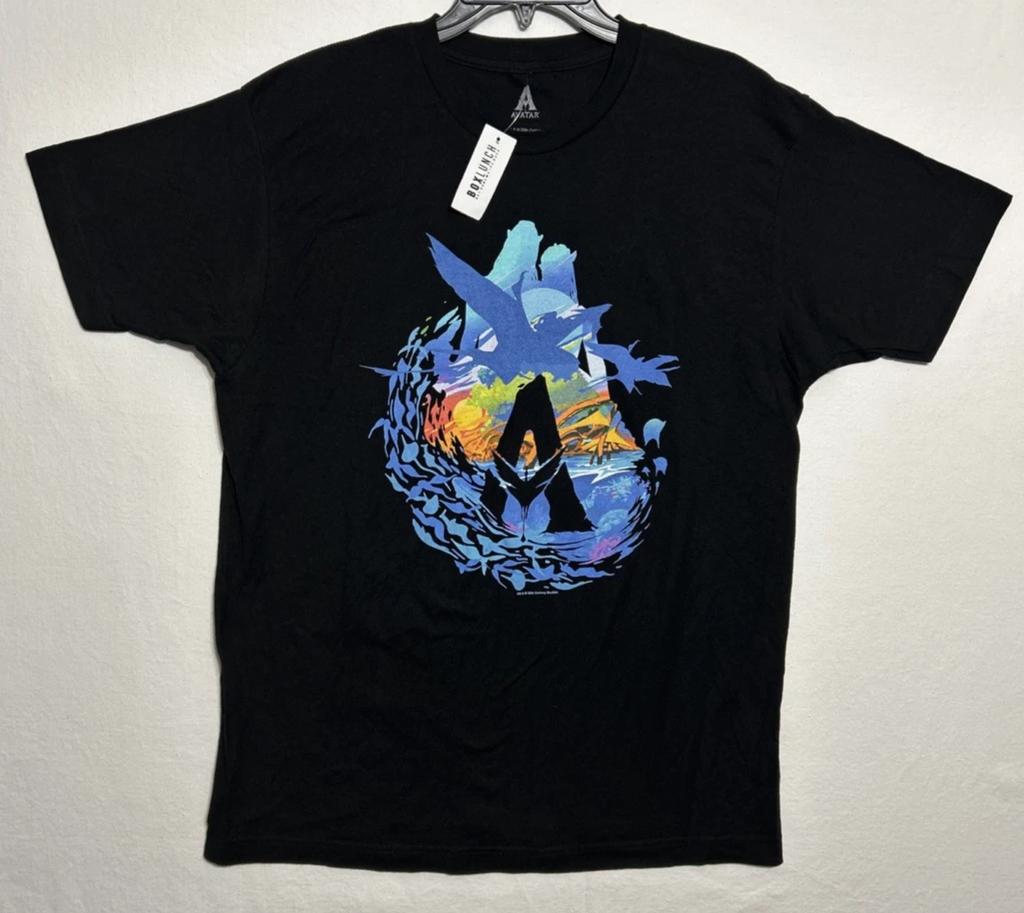 2025Summer Avatar Way of Water Flyby Box Lunch Black Short Sleeve Graphic T-Shirt Large 100% Pure Cotton Printed Leisure T-shirt