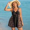 Plus Size Women’s Printed Swim Dress Modest Bathing Suit Backless Swimwear Two-Piece Swimsuit