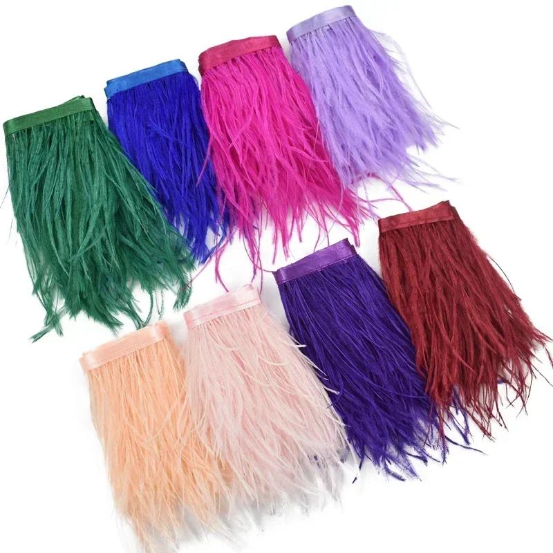 Feather1Meter Ostrich Feathers on Ribbon Tape 10-15CM White Feather Tassel Fringe Trim Boa Sewing Trimmings Clothes Accessoires Mariage