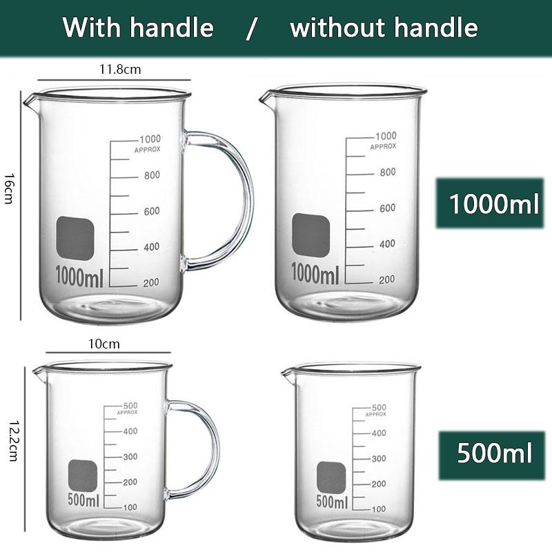 500/1000ml High Borosilicate Glass Measuring Cup With/Without Handle Heat-resistant Laboratory Beaker Kitchen Measuring Tools