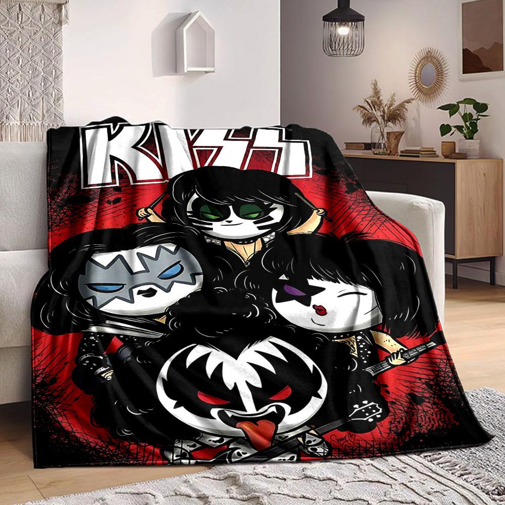 1pc KISS Band Merchandise Blanket Soft All Season Throw with Vibrant Design, Perfect for Home, Travel, and Gifts, Ideal for Naps and Camping — cumpără ieftin în cadrul magazinului online Joom
