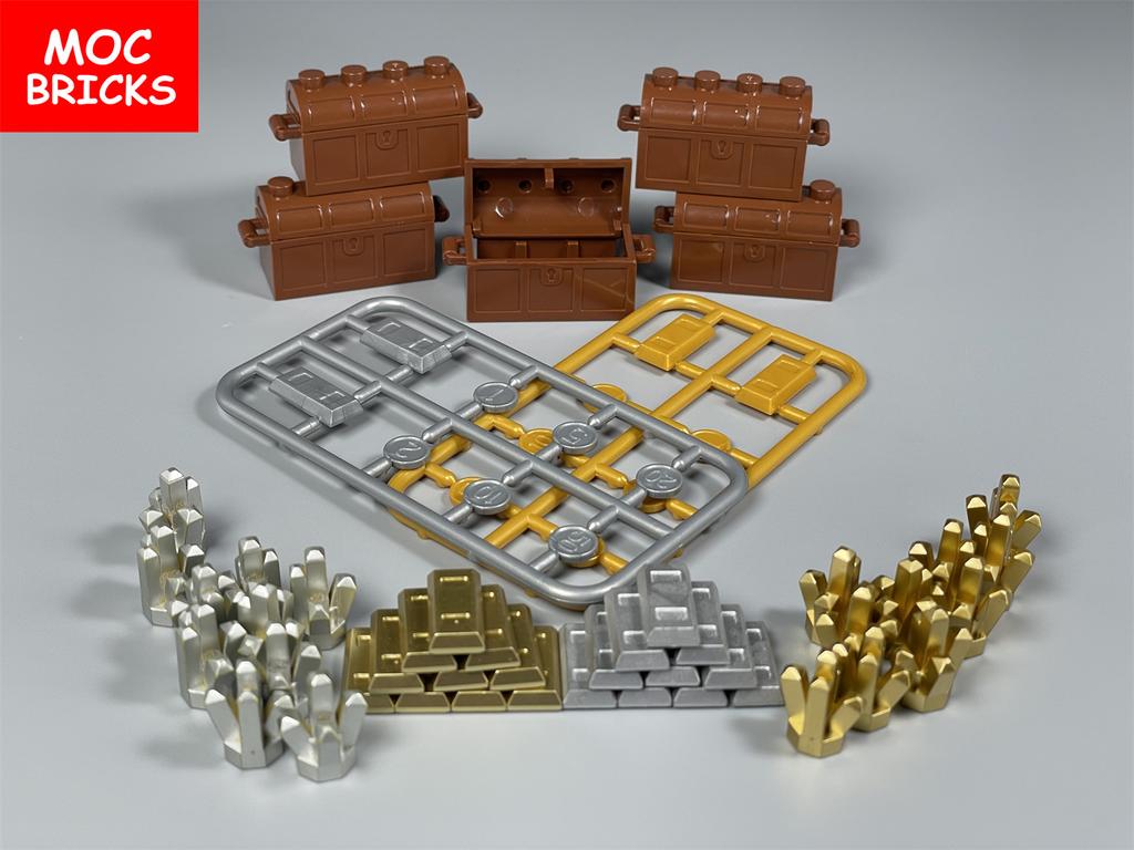 MOC Bricks Treasure Box Money Gold Coin Gem Precious Stone Building Blocks Educational Assembled Parts Toys For Kids Gift