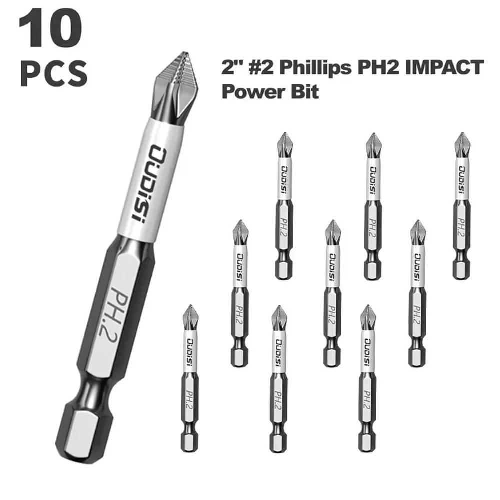10pcs 50mm/2Inch Phillips PH2 Impact Screwdriver Bit Perfect for Plastic Wood Metal Projects Electric Drill Hexagonal Suit Head