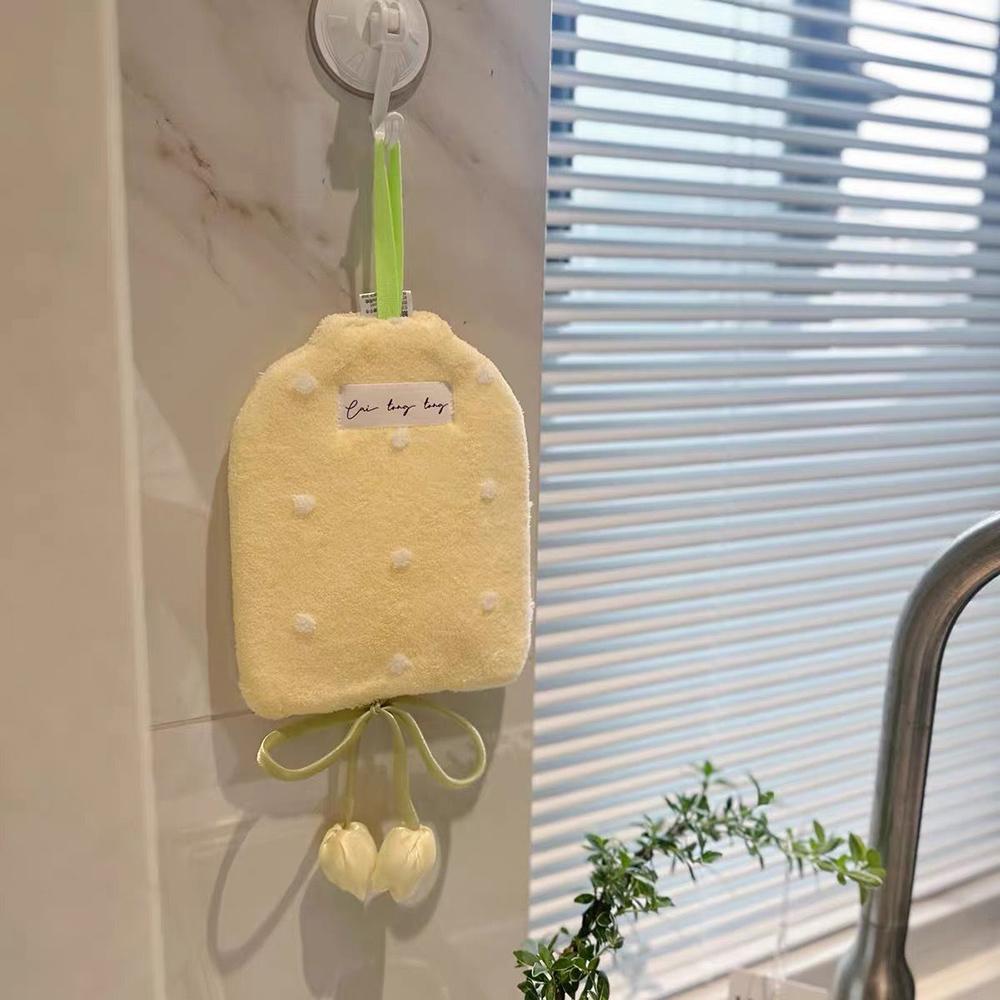 Simple Tulip Polka Dot Hand Towel Hanging Cute Bathroom Absorbent Towel Kitchen Coral Velvet Quick-drying INS Style Handkerchief