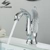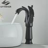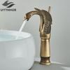 Uythner Luxury Swan Bath Basin Brass Faucet Cold and Hot Water Mixer Taps Black /Gold/Antique Bathroom Washbasin Crane