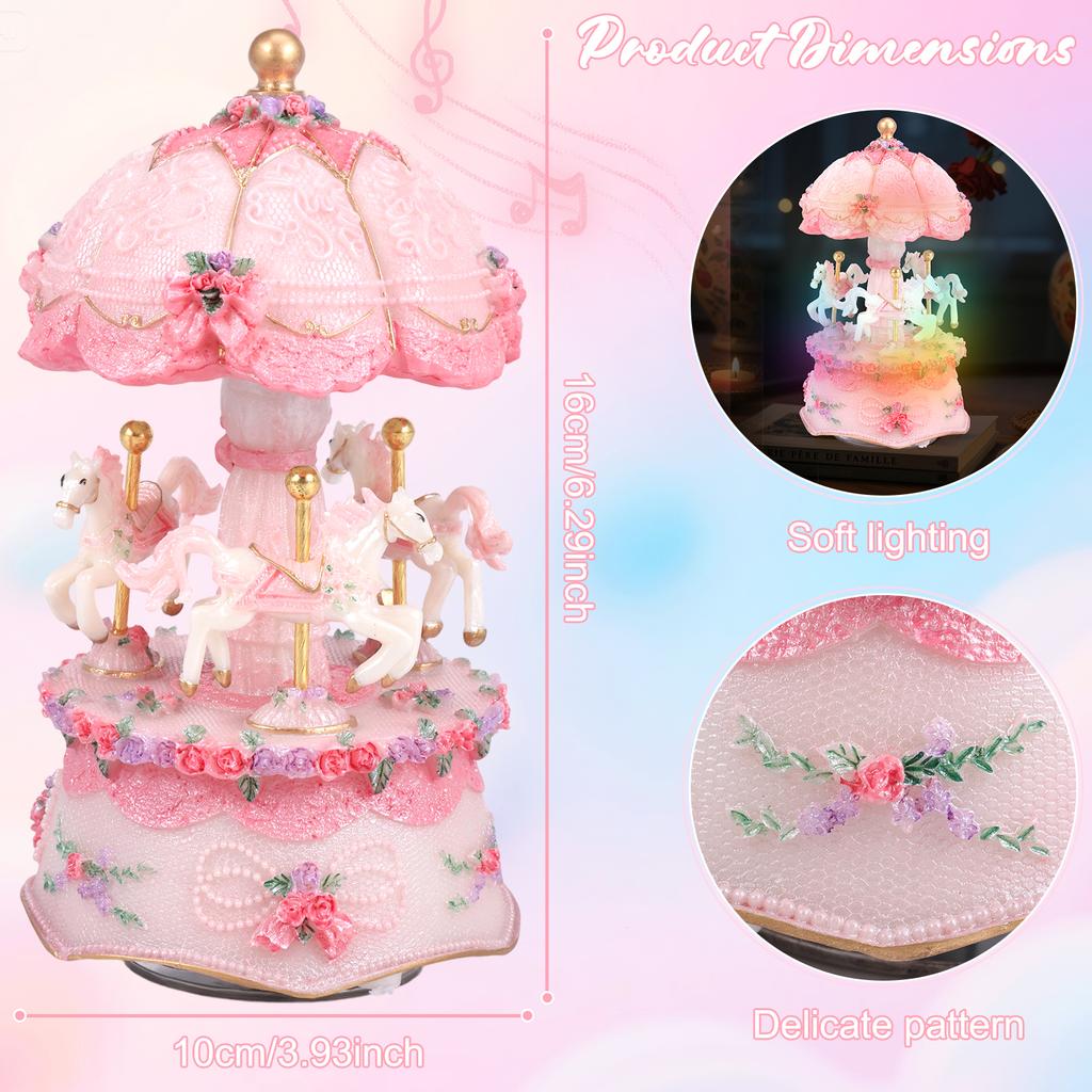 1 buc Cutie Muzicală Carusel cu 3 Cai Carusel Rotativ Strălucitor Cutii Muzicale pentru Fete Femei Copii Soră Fiică Mamă Cadouri