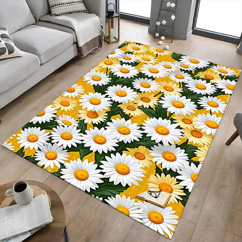 1PC Daisies Flowers Extra Large Non Slip Floor carpet, Office, family, bedroom, Studio Large Area Rug Indoor Rugs, Vibrant Colors