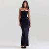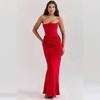Sexy Satin Evening Club Party Dresses Women 2026 Summer Strapless Off Shoulder Fishbone Ruched Maxi Long Dress Elegant Robe