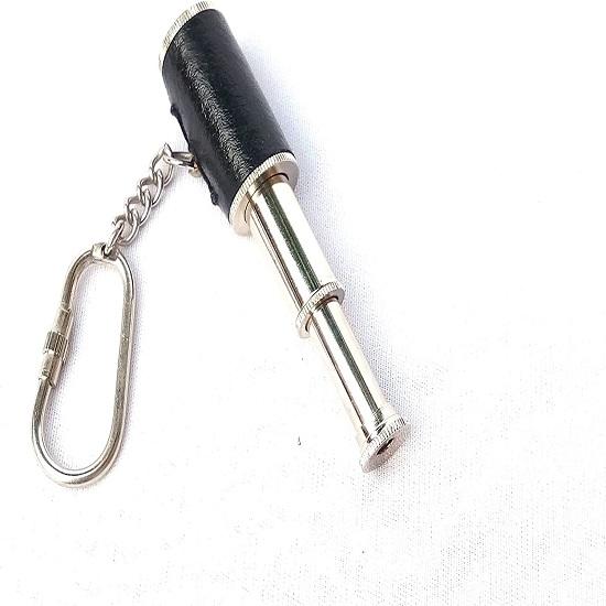 Telescope Key Chain Ring, Nickel Finish Leather Keychain Rings for Keys Nautical Gift, Black,