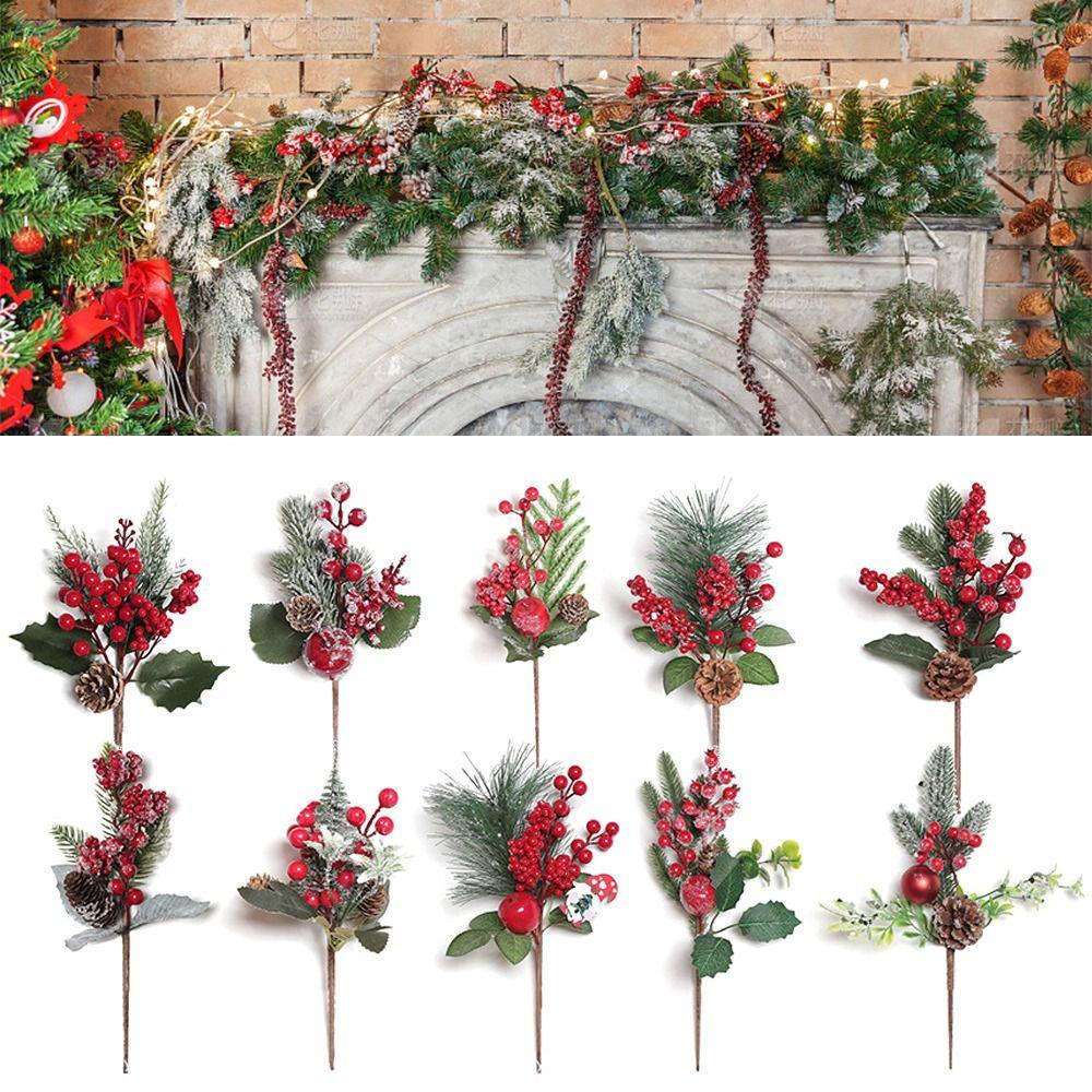 4. Christmas floral stems for arrangements, DIY wreath design, indoor lanterns or baskets, add them to your tree for a rustic farmhouse look, you get 5! The stem is wired for easy manipulation.