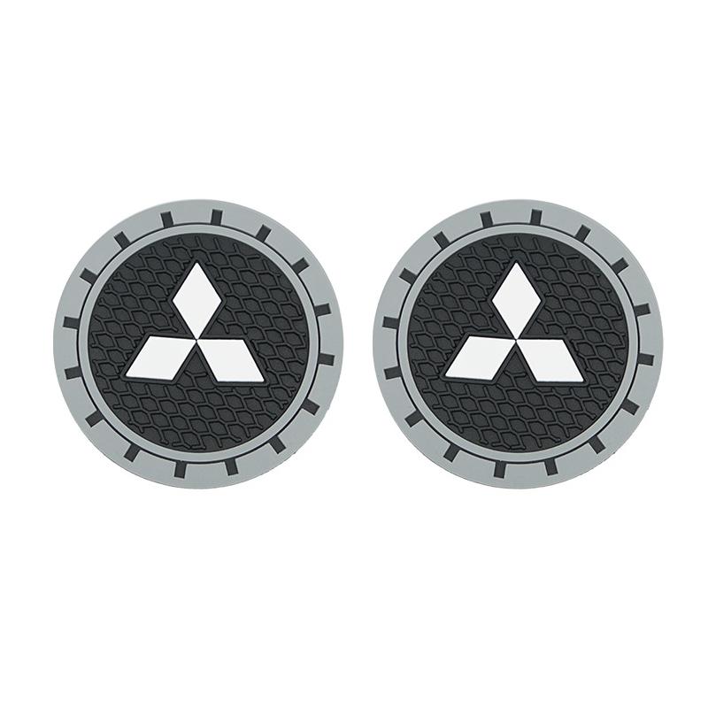 2pcs PVC Non-slip Car Logo Coaster Mat Water Cup Pad for Mitsubishi Lancer EX Galant ASX Outlander Pajero Eclipse Ralliart Colt