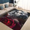 Covor Rug 3D Craniu Gotic Față Trandafir Femeie Desen Animat Groaznic pentru Sufragerie Dormitor Casă Decor Canapea, Covoraș de Podea Antiderapant pentru Copii