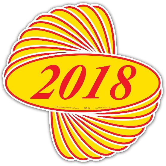 EZ-Line Oval Model Windshield Year Stickers for Car Windows Red and Yellow Large Vinyl Dealership Supplies 1 Dozen Pro Pack (2018)