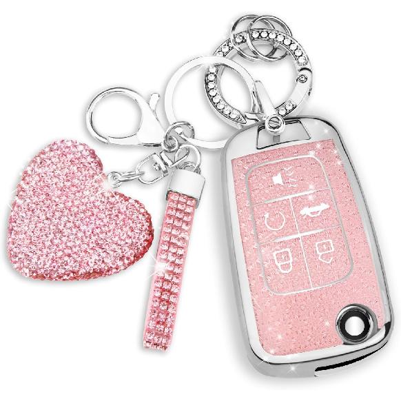 QBUC for Chevy Key Fob Cover with Diamond Keychain, for Chevrolet Equinox Malibu Camaro Cruze Impala GMC, for Buick LaCrosse Regal Allure Key
