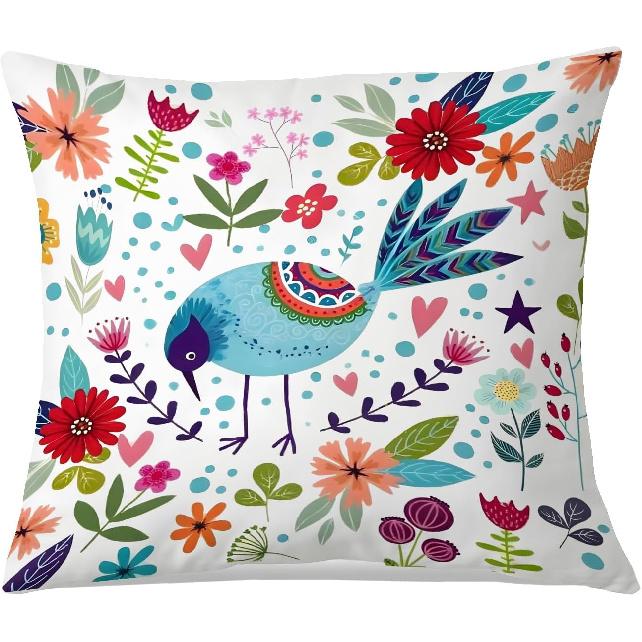 Boho Floral Bird Pillow Cover 18x18 Inches, Colorful Flower & Bird Pattern, Rustic Botanical Home Decor, Nature Lover Gift, Farmhouse Accent — cumpără ieftin în cadrul magazinului online Joom