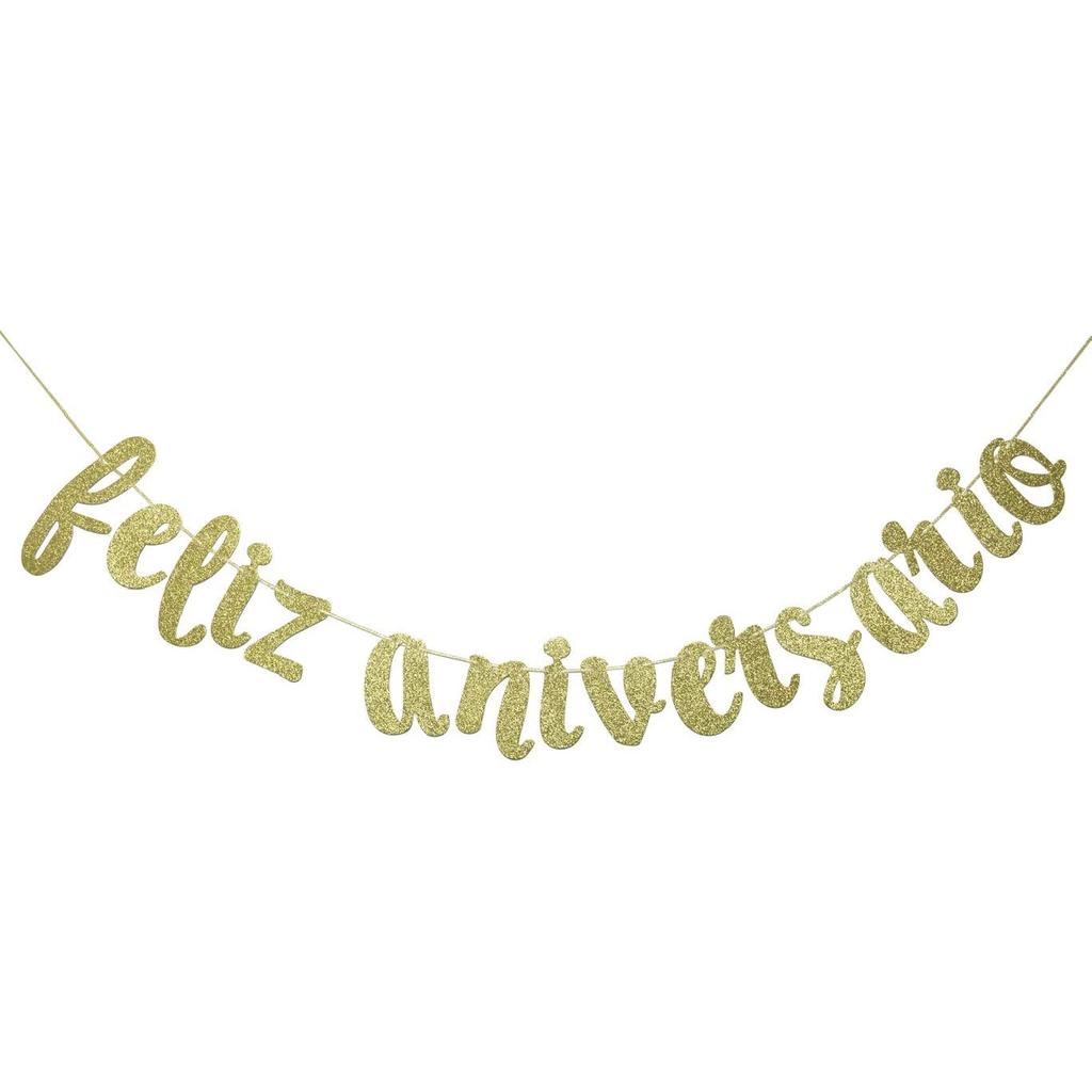 Feliz Aniversario Banner for Happy Birthday Wedding Anniversary Party Decorations Spanish Fiesta Mexican Theme Sign Photo Backdrop (Gold Glitter)