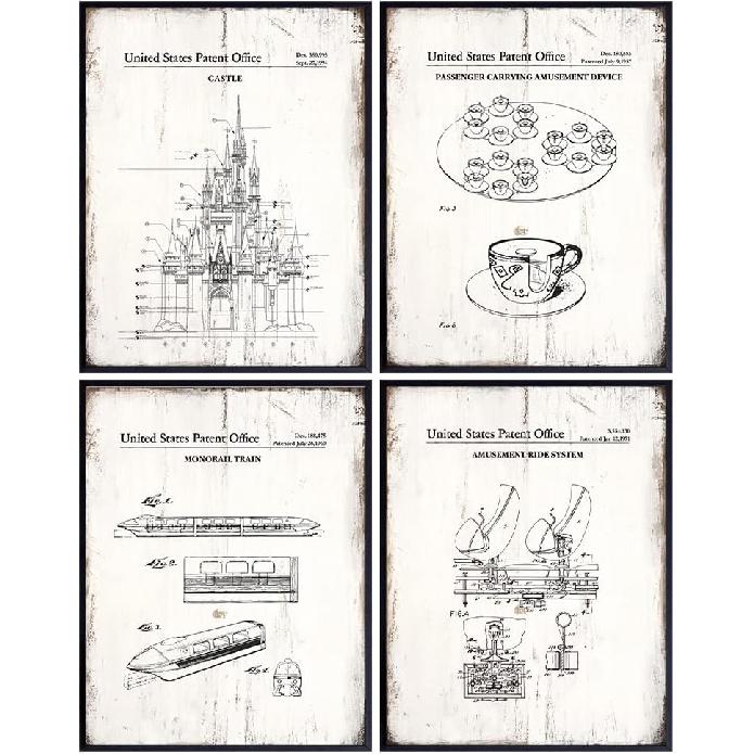 Rides Sign Patent Art Prints - Vintage Wall Art Poster Set - Rustic Home Decor for Boys, Girls, Teens, Kids Room - Gift for Mickey Fans - 8x10 Photos — cumpără ieftin în cadrul magazinului online Joom