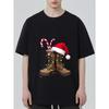 Christmas Boots T Shirt Black Santa Hat and Candy Cane Print Holiday Party Casual Wear — cumpără ieftin în cadrul magazinului online Joom