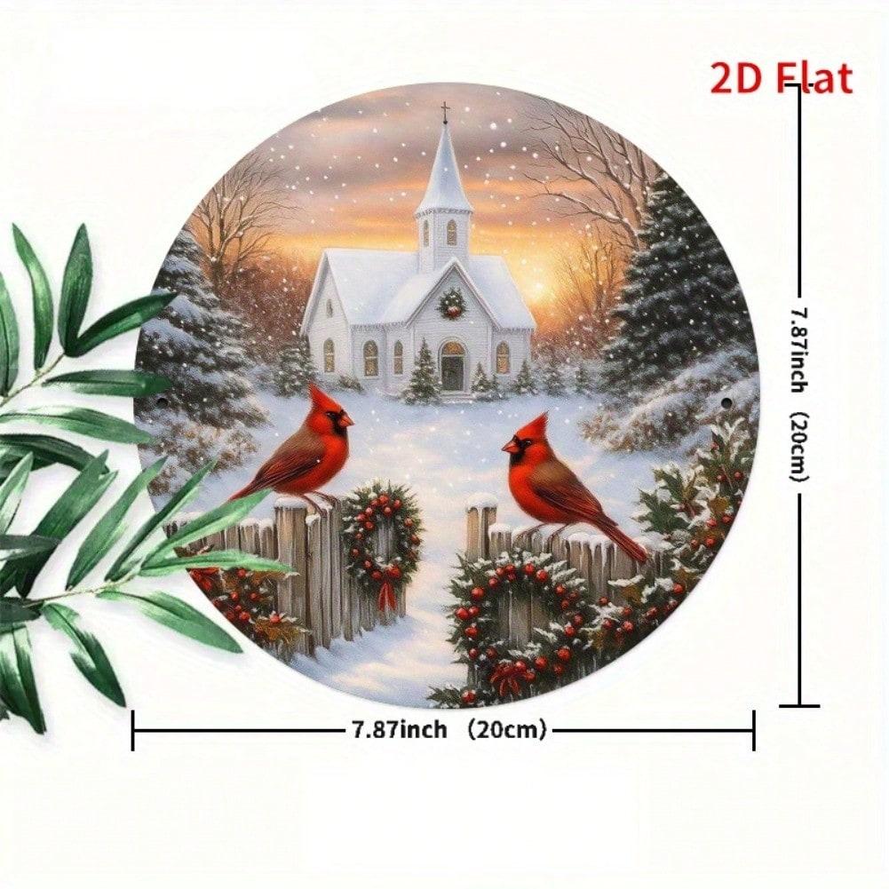 Vintage Iron Tin Sign Winter Church Cardinals Rustic Home Garden Wall Decor 8x8 Inch Inspirational Quote