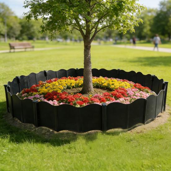 Garden Edging Border No-Dig Design Landscaping Edging Interlocking Plastic Edging Panels with Stakes for Lawn Flower Bed Fence Borders